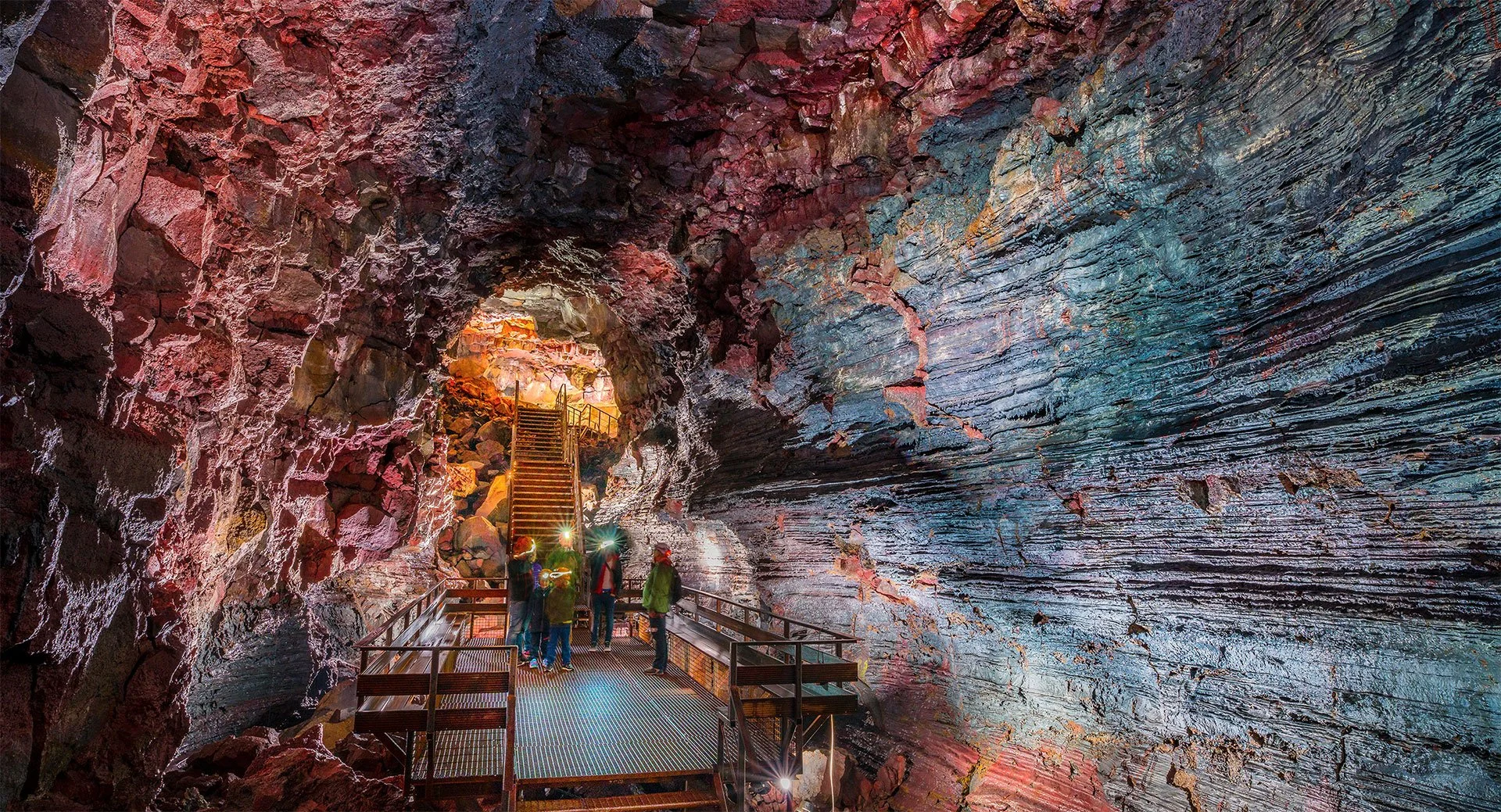 A journey into Raufarhólshellir is a unique experience and a great opportunity to witness the inner workings of a volcanic eruption as one walks in the path of lava that flowed during the Leitahraun eruption, which occurred east of the Bláfjöll mountains about 5200 years ago